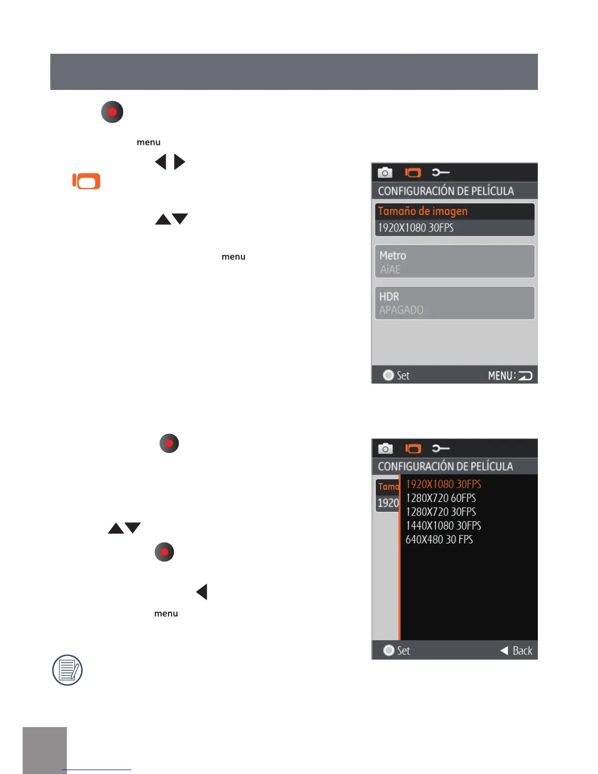 Conguración de grabación de vídeo