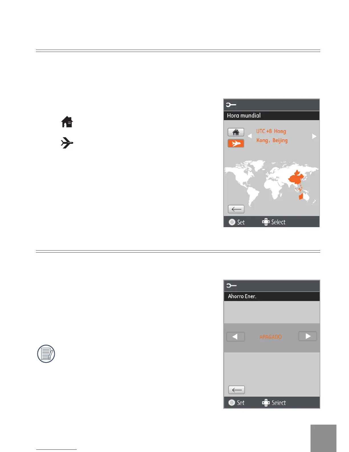 Existen dos opciones de Hora mundial: