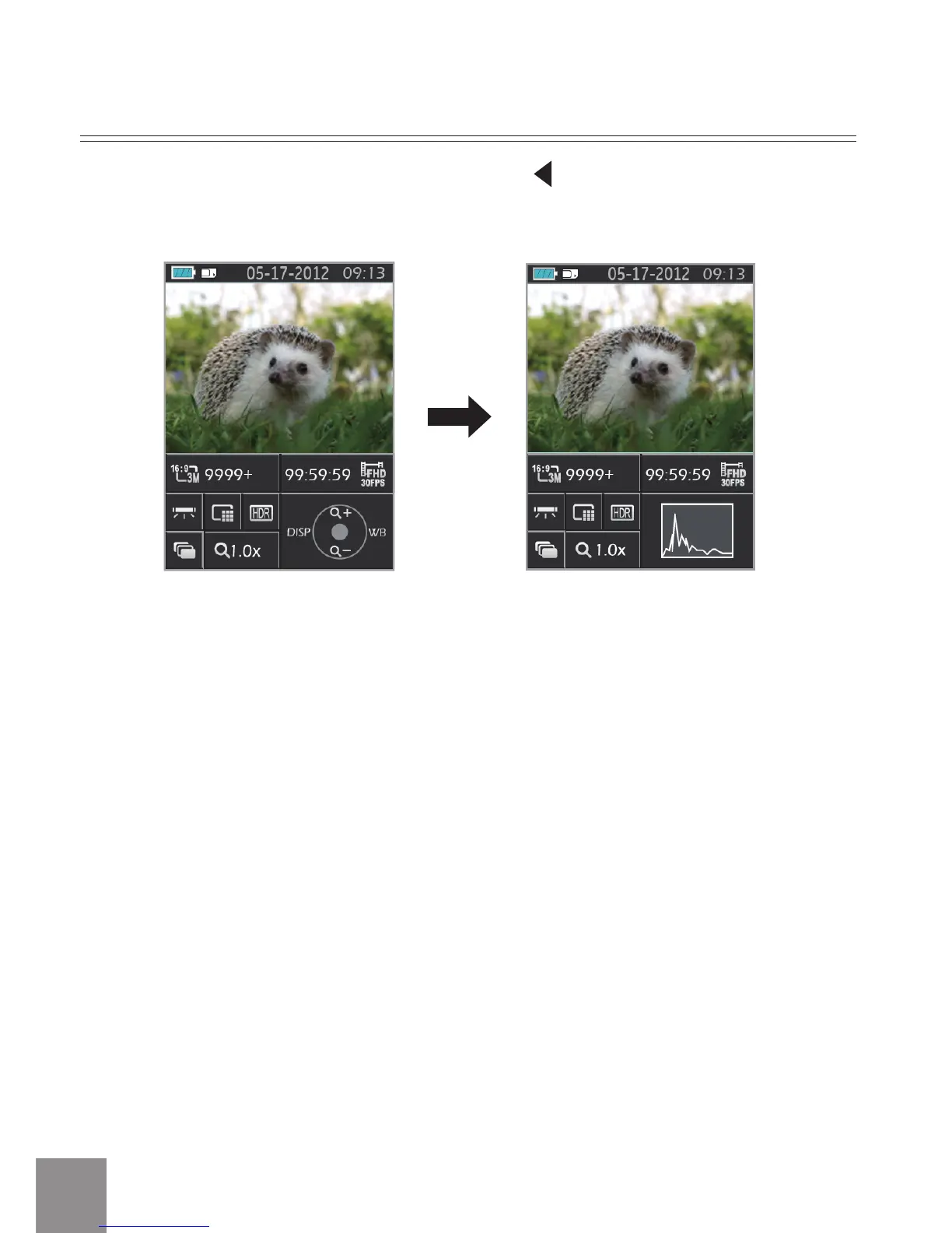 En mode de prise de vue, appuyez sur la touche /DISP pour commuter l’