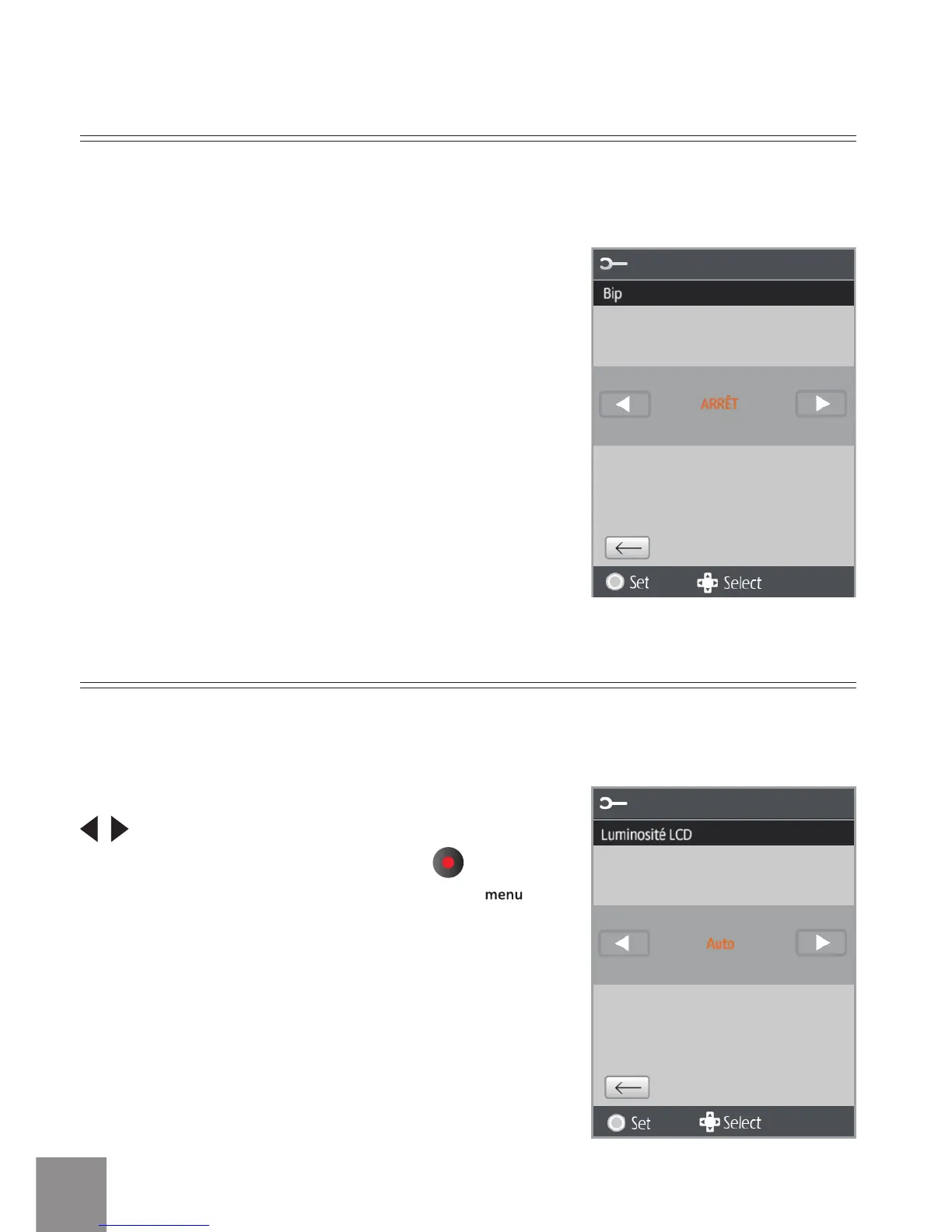 En mode Luminosité LCD, appuyez sur la touche