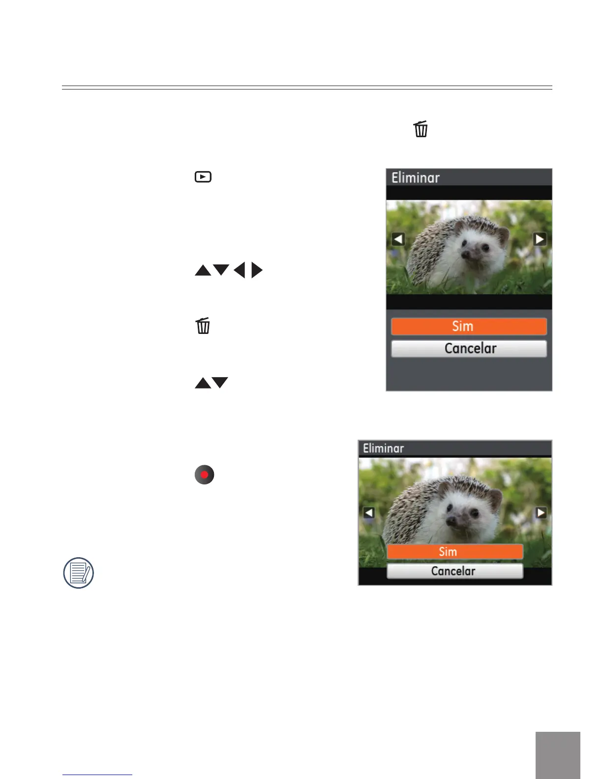 de Data / Miniatura da Pasta de Data), pressionar o botão pode excluir os