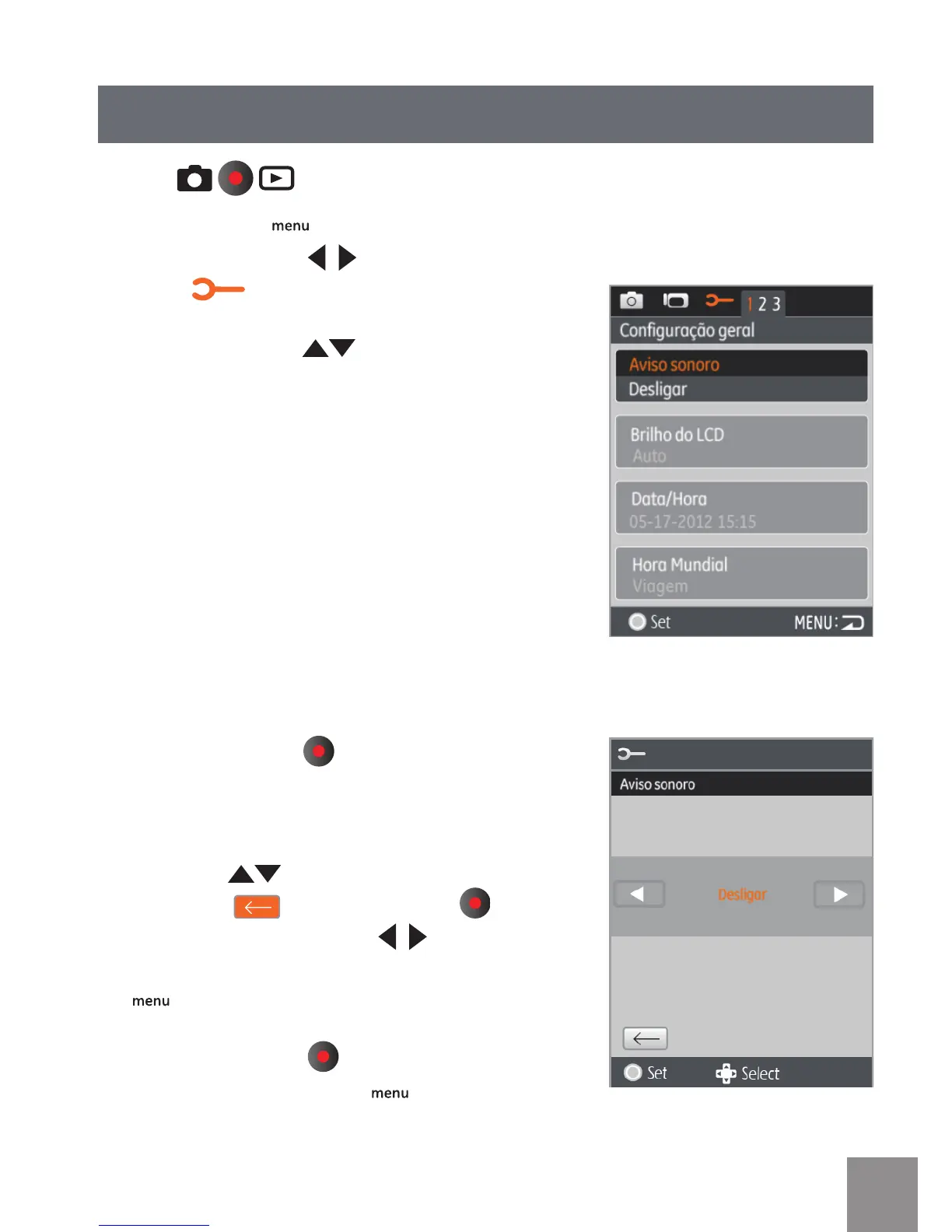 menu, pressione o botão para voltar a