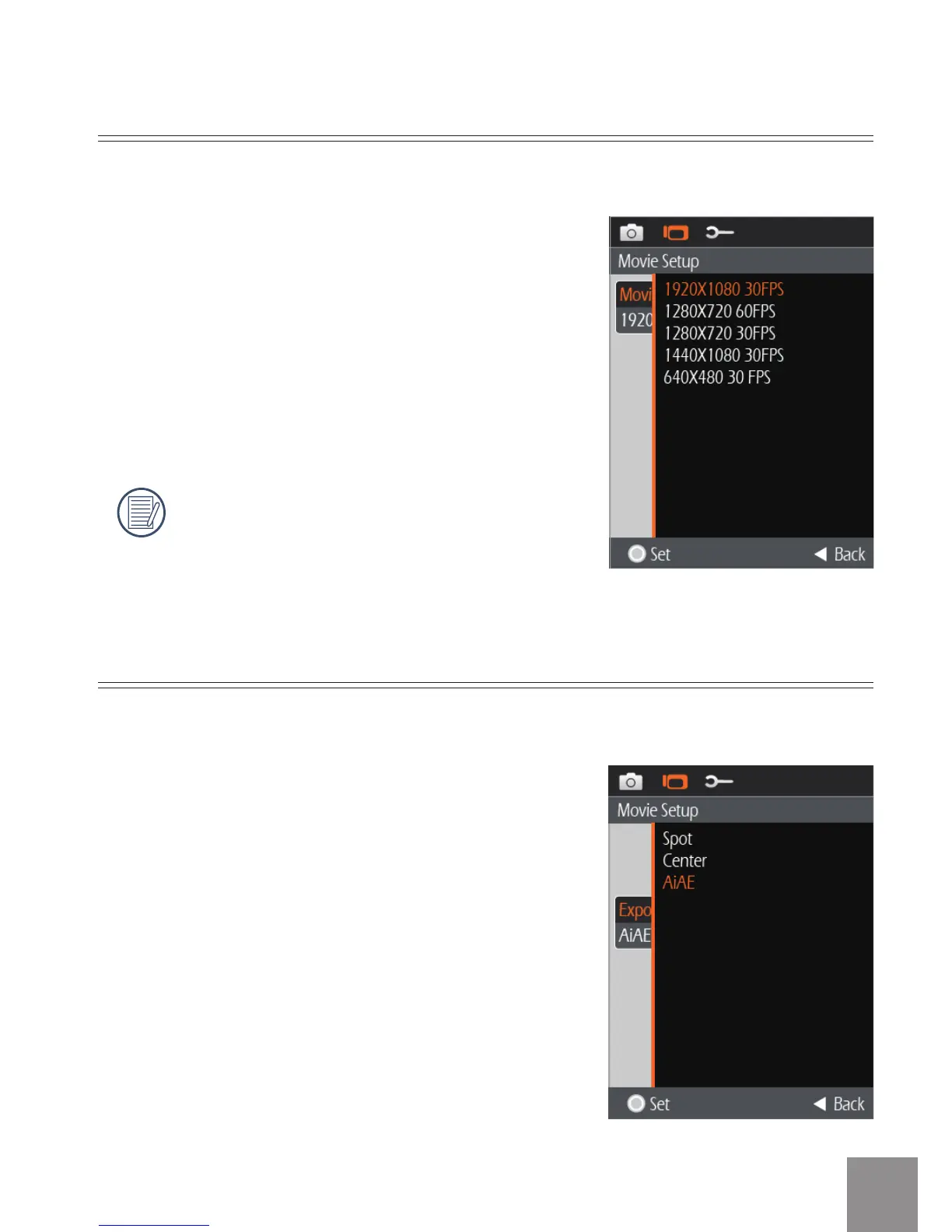 The Movie Resolution setting has ve options:
