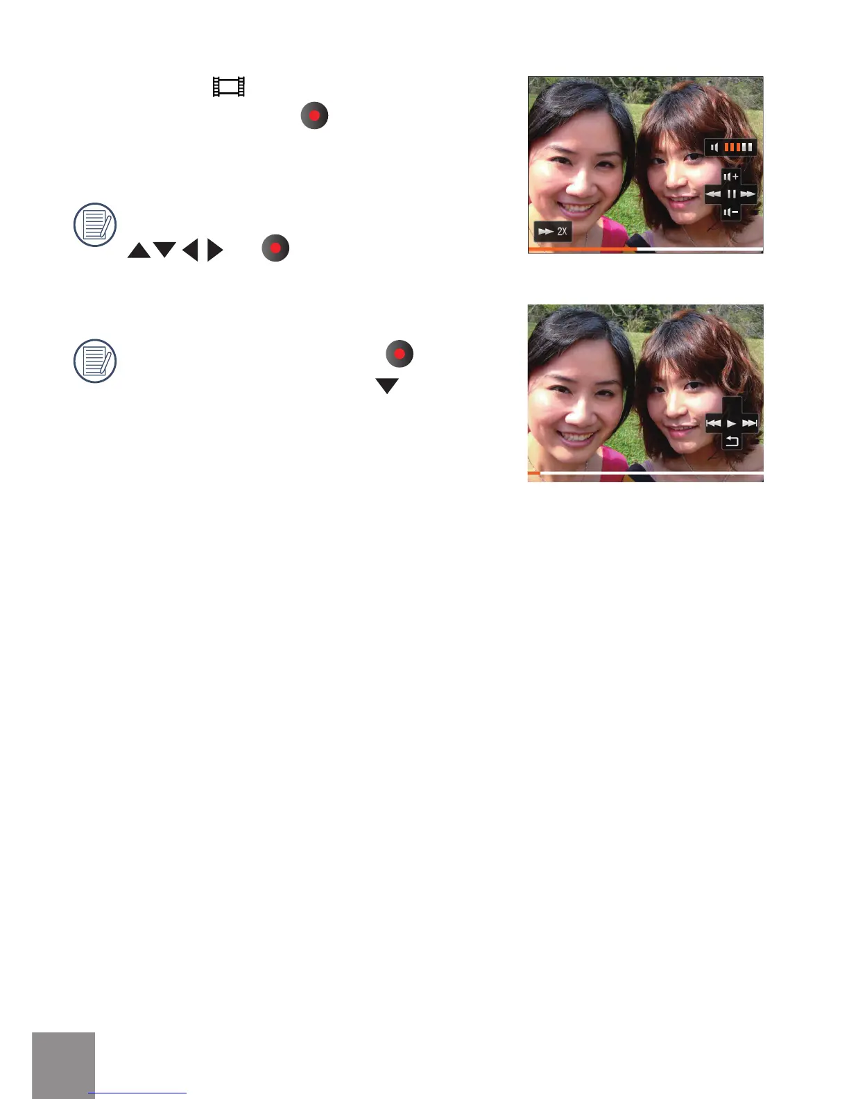 When playing video, press the button