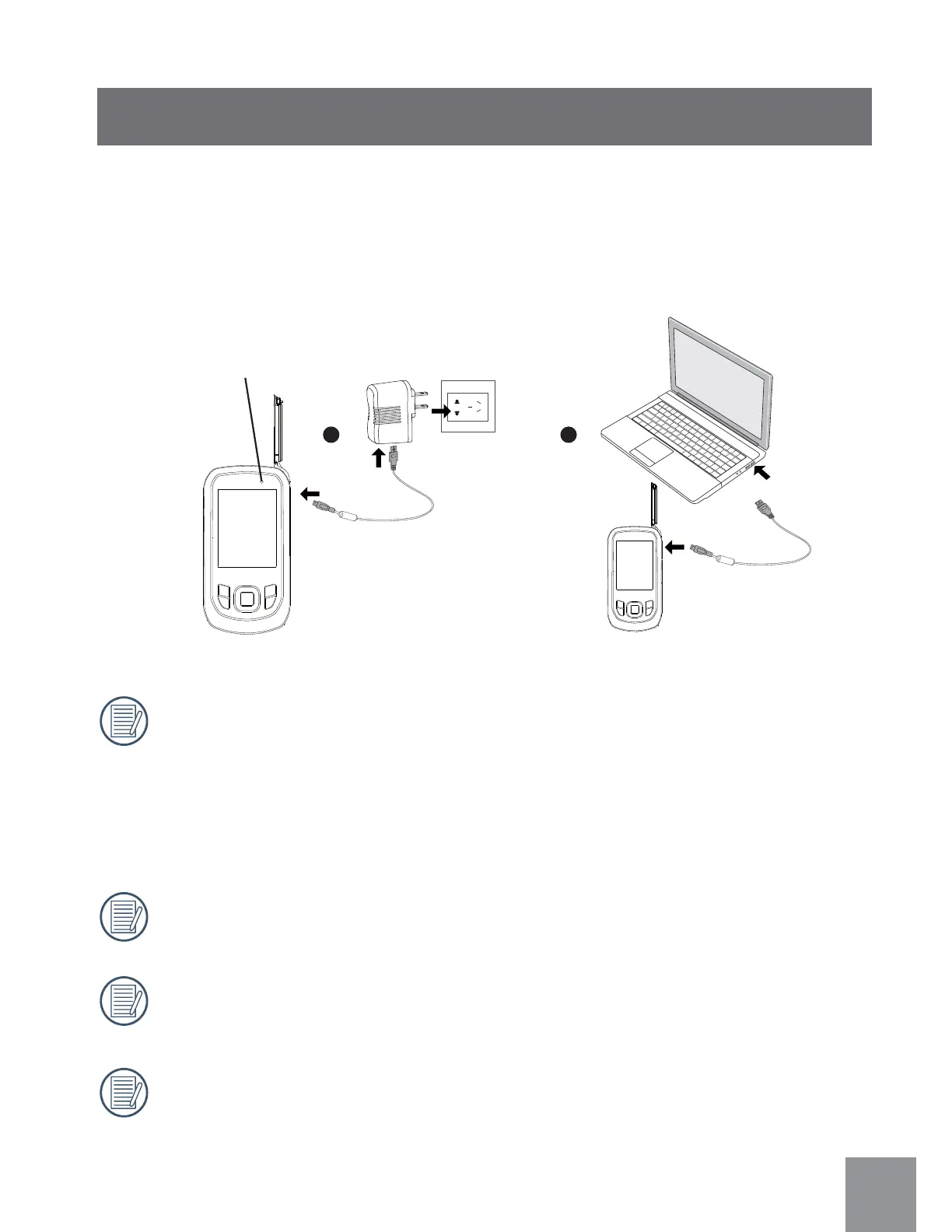 This video camera can be charged by the following two methods: