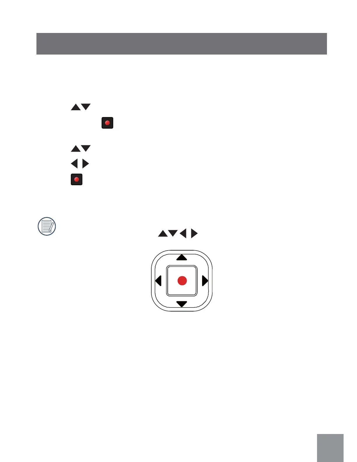 In this user manual, the direction button, Up/Down/Right/Left, are