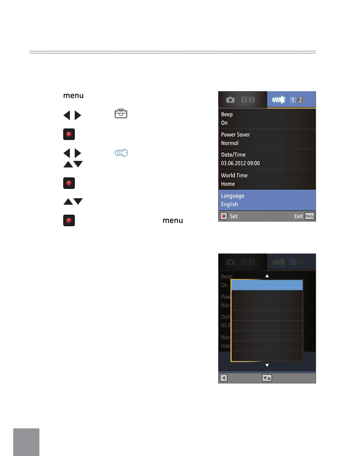 GE DVZ - Resetting Language; Accessing Language Menu; Selecting New Language