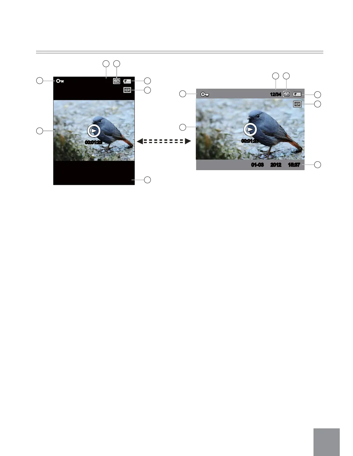 GE DVZ - Vertical and Horizontal Playback; Playback Screen Elements; Playback Mode Navigation