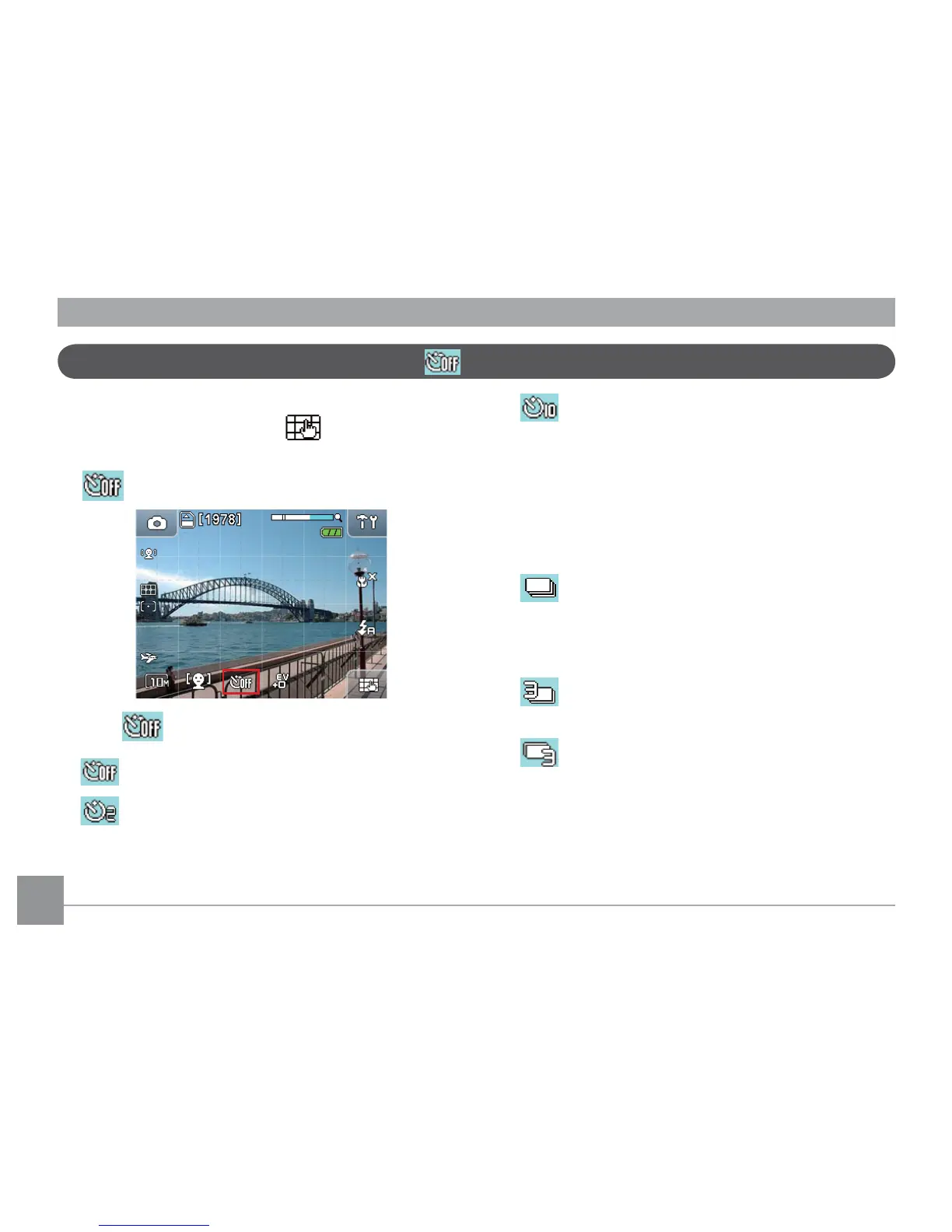 1. In Shooting mode, Touch the button at the