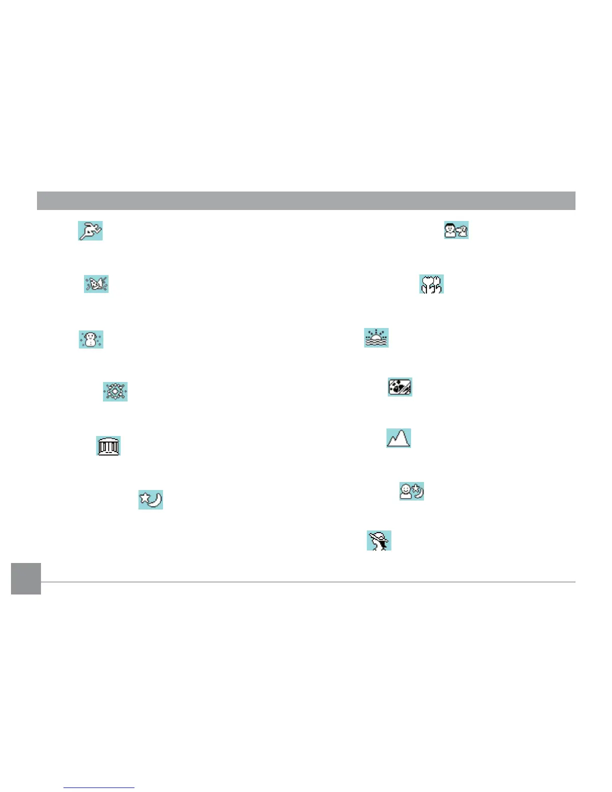 For shooting night scenes. (Use of tripod is recom-