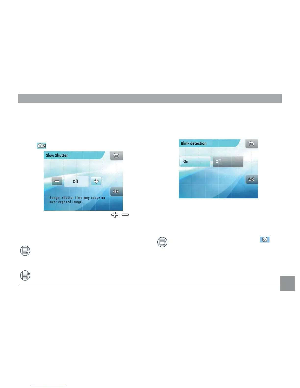 to adjust the exposure time. Press and hold the