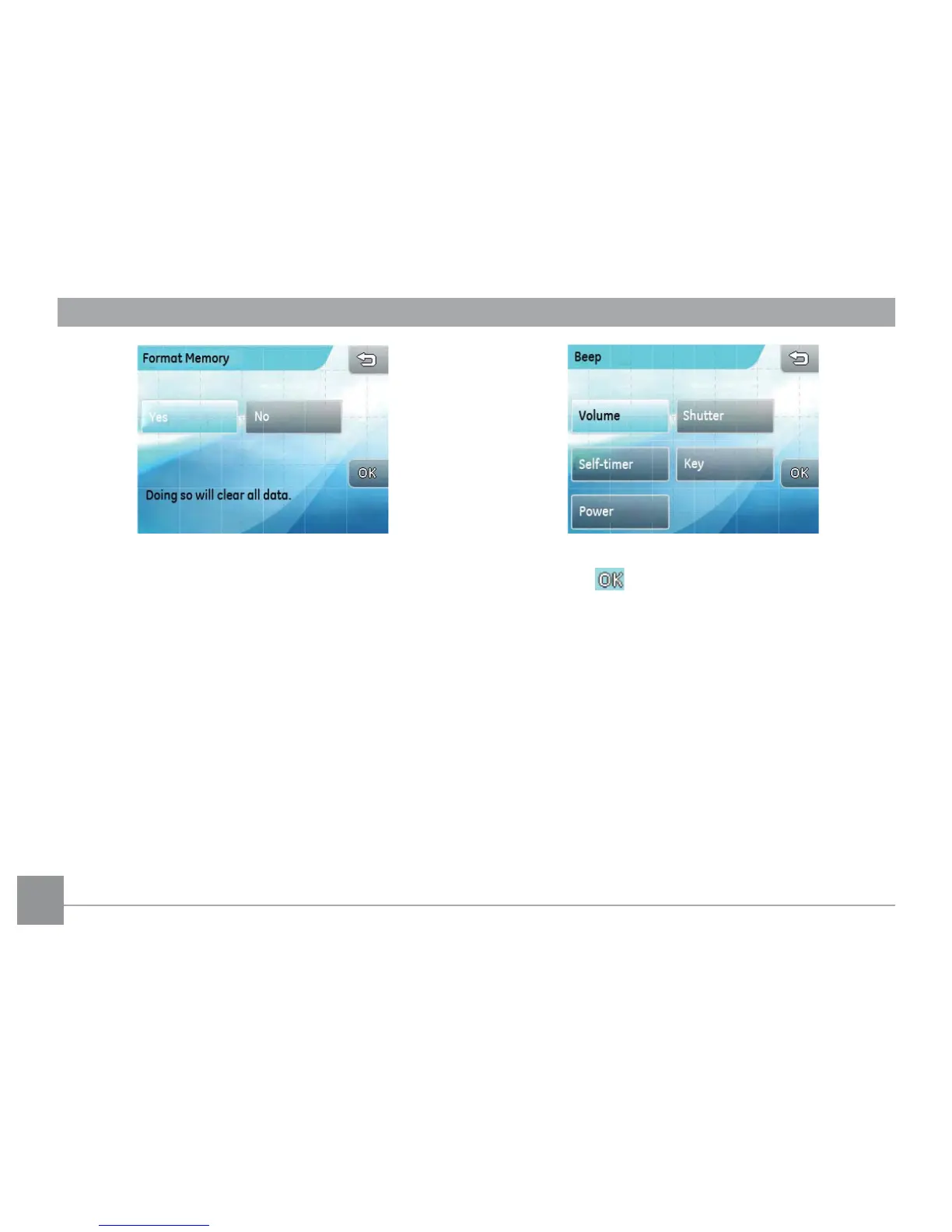 1. In the camera setting menu, select the Beep