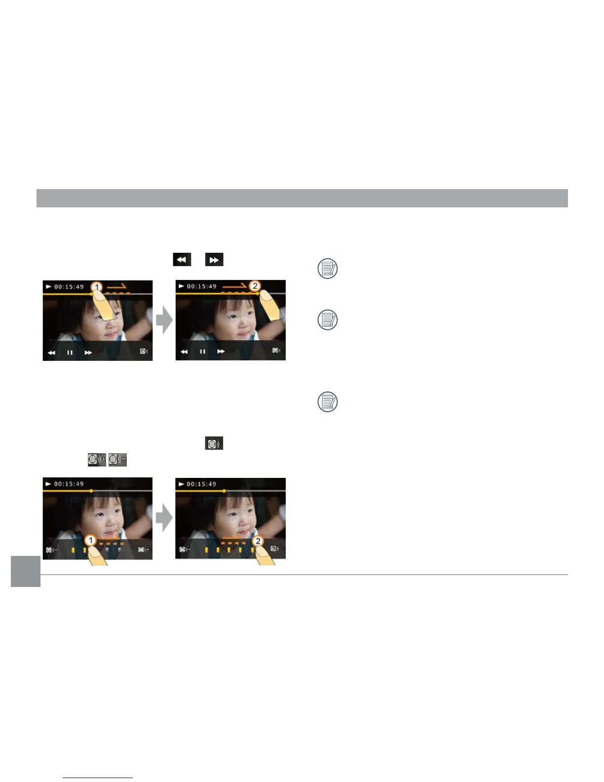 When you adjust playback time or volume by