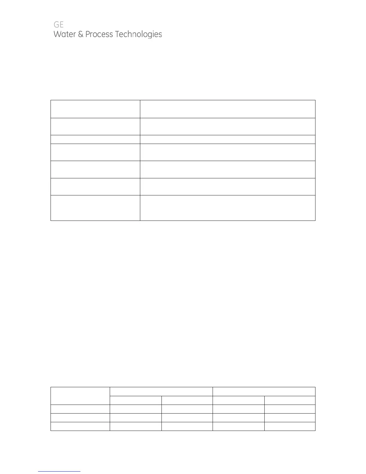 Table 3. Feed Water Requirements