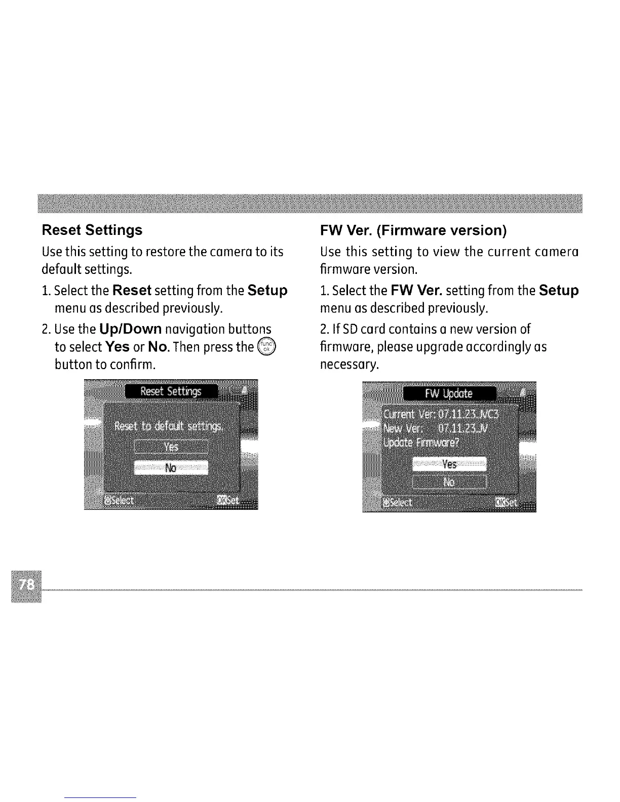 GE E840S - Reset Settings; FW Ver. (Firmware Version)