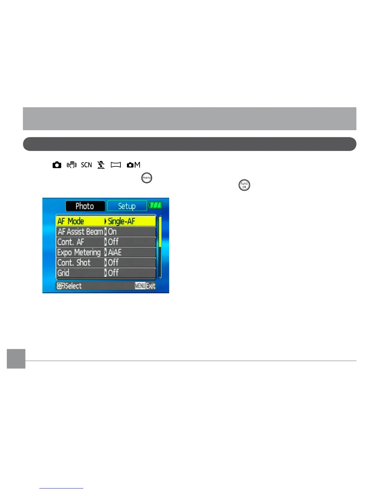 and exit the menu.