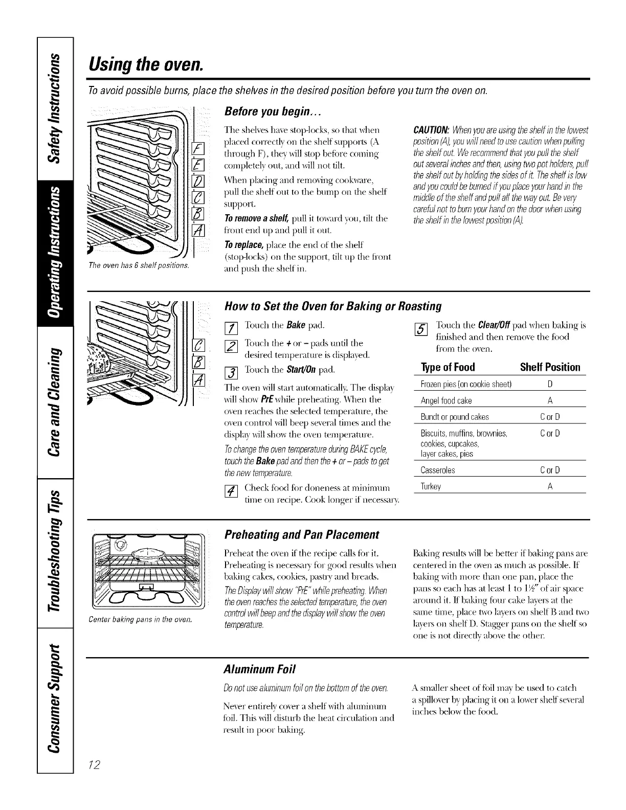 Toavoid possible bums, place the shelves in the desired posifion before you turn the oven on.