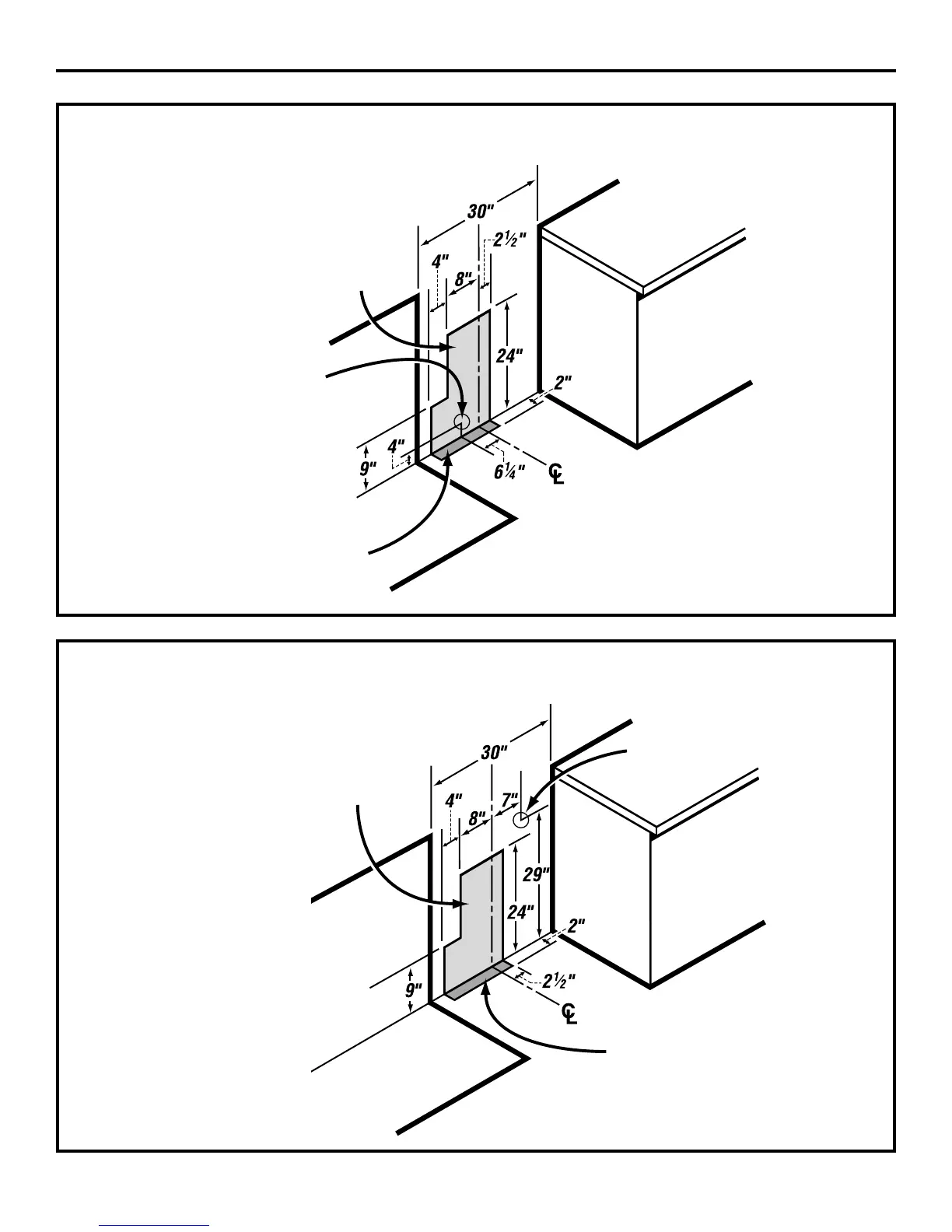GAS PIPE AND ELECTRICAL OUTLET LOCATIONS (for models with Sealed Burners)