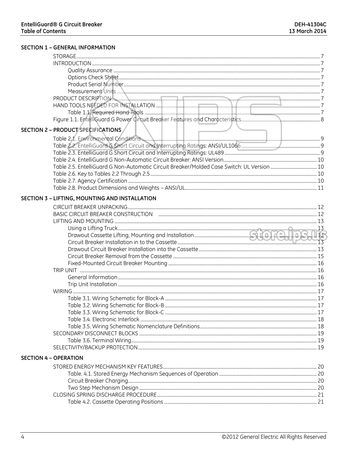 Table 2.4. EntelliGuard G Non-Automatic Circuit Breaker: ANSI Version................................................................................... 10