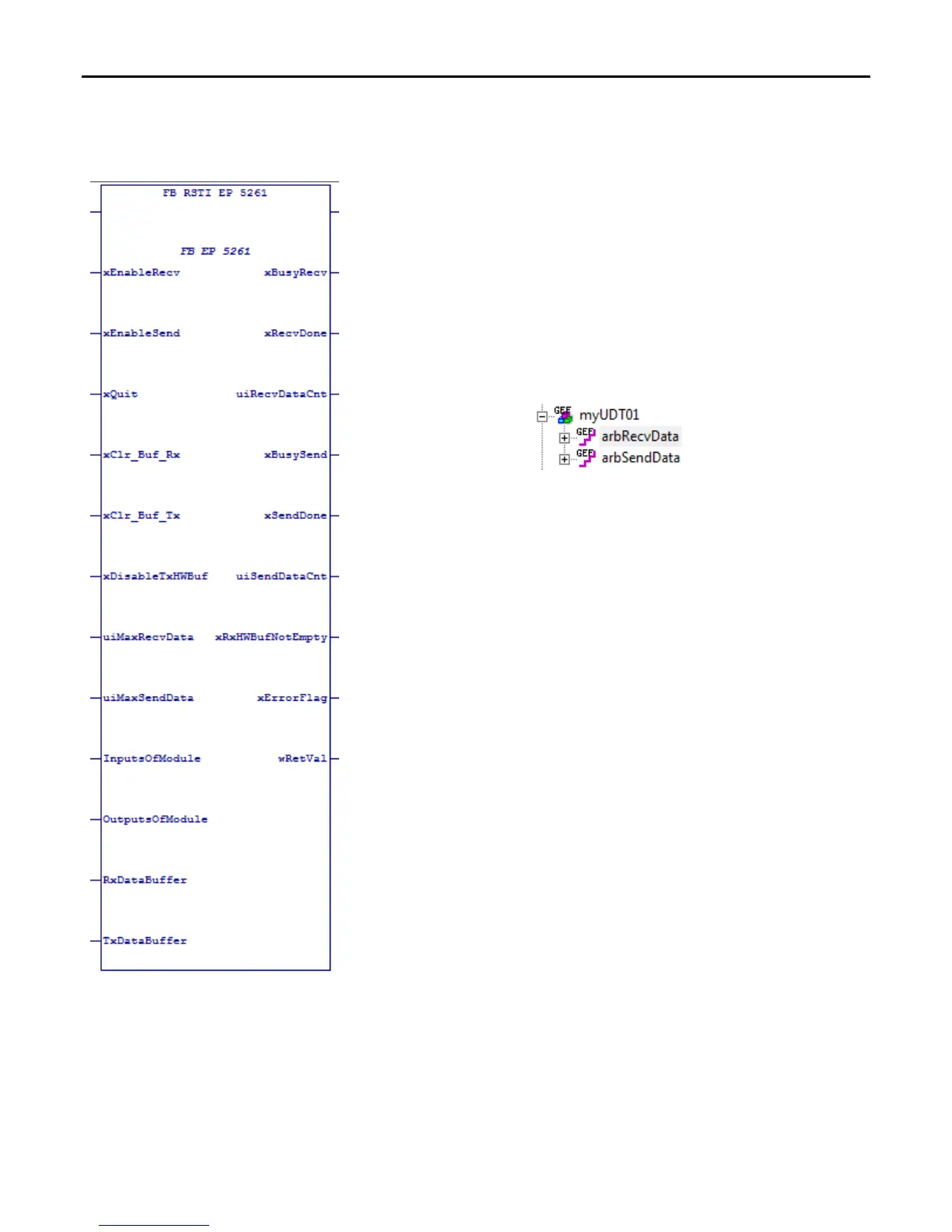 To enable data transmission using FB_RSTI_EP_5261, a User Defined Type