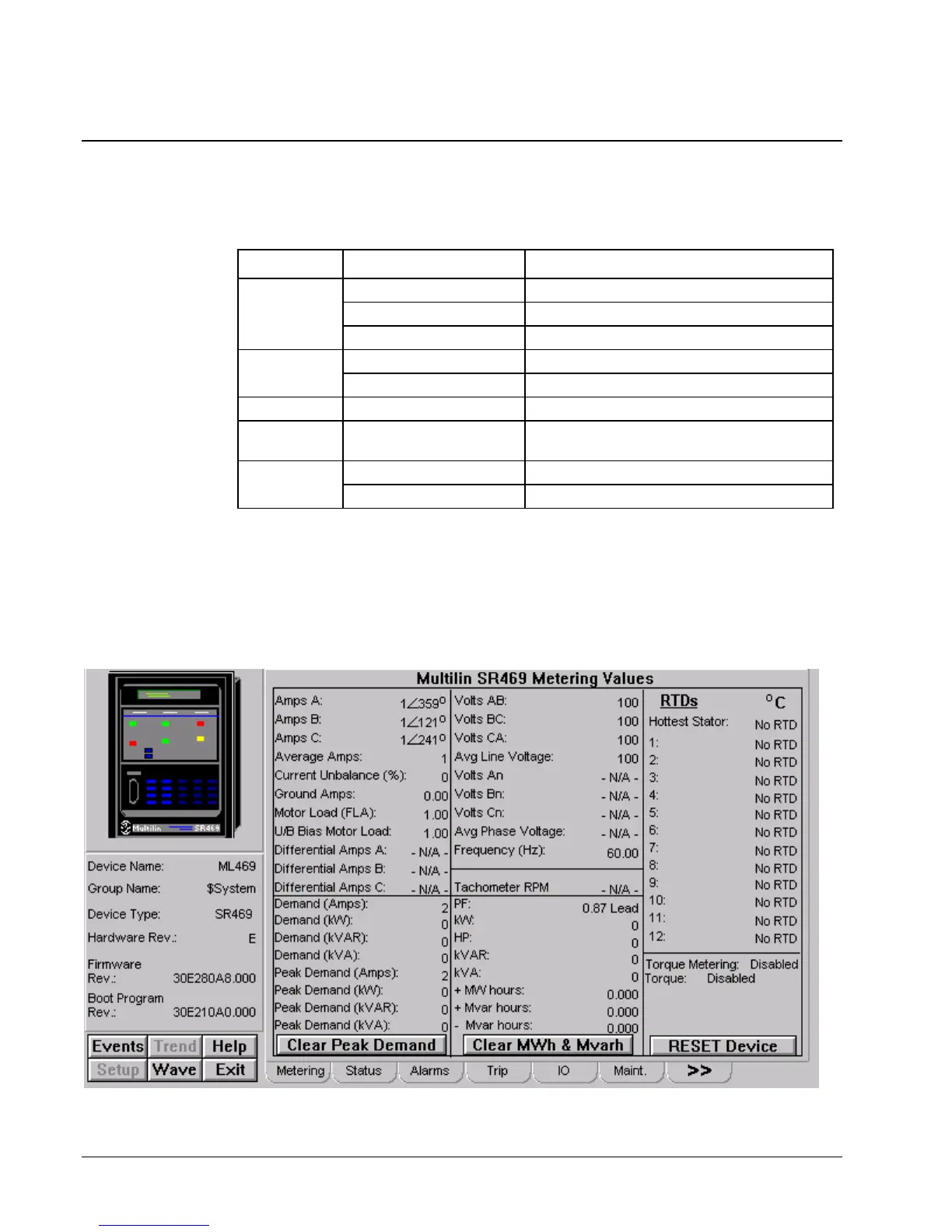 See the SR469 Motor Management Relay manual (Chapter 5, Actual Values) for