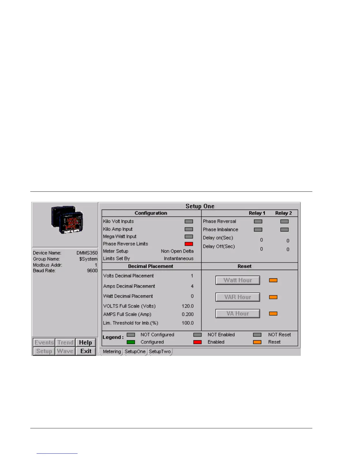 The screen explains various parameters in relation with Relay 1 and Relay 2 such as: