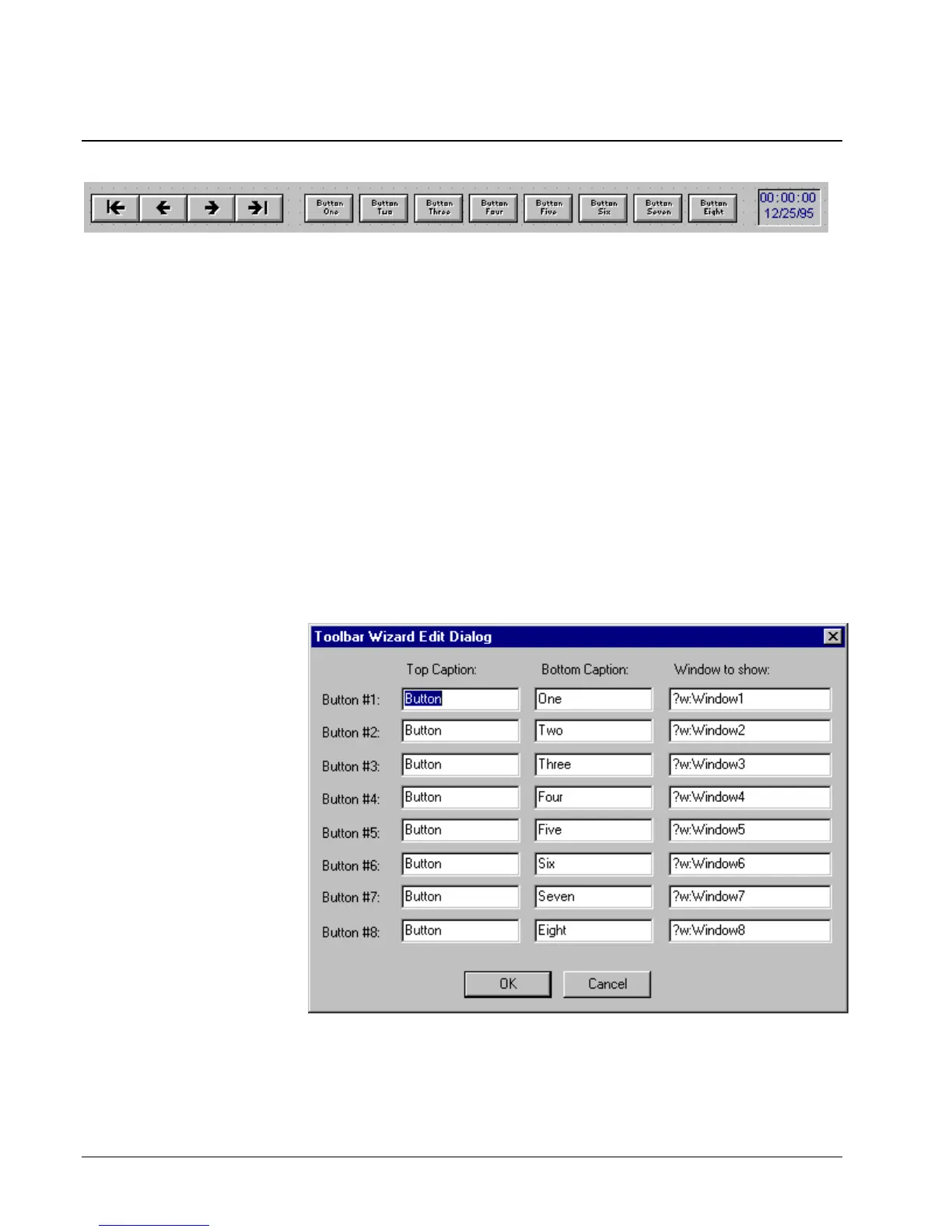 completing the Toolbar Wizard Edit dialog box: