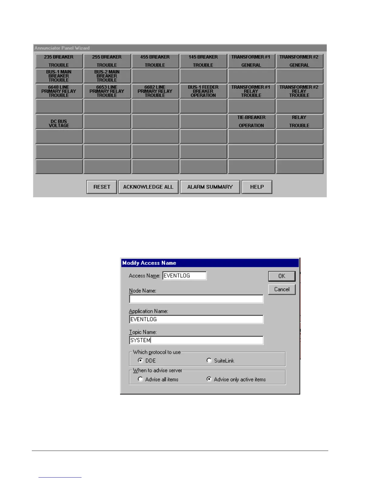 Event Logger corresponding to the Alarm Panels. Make sure the DDE Item names
