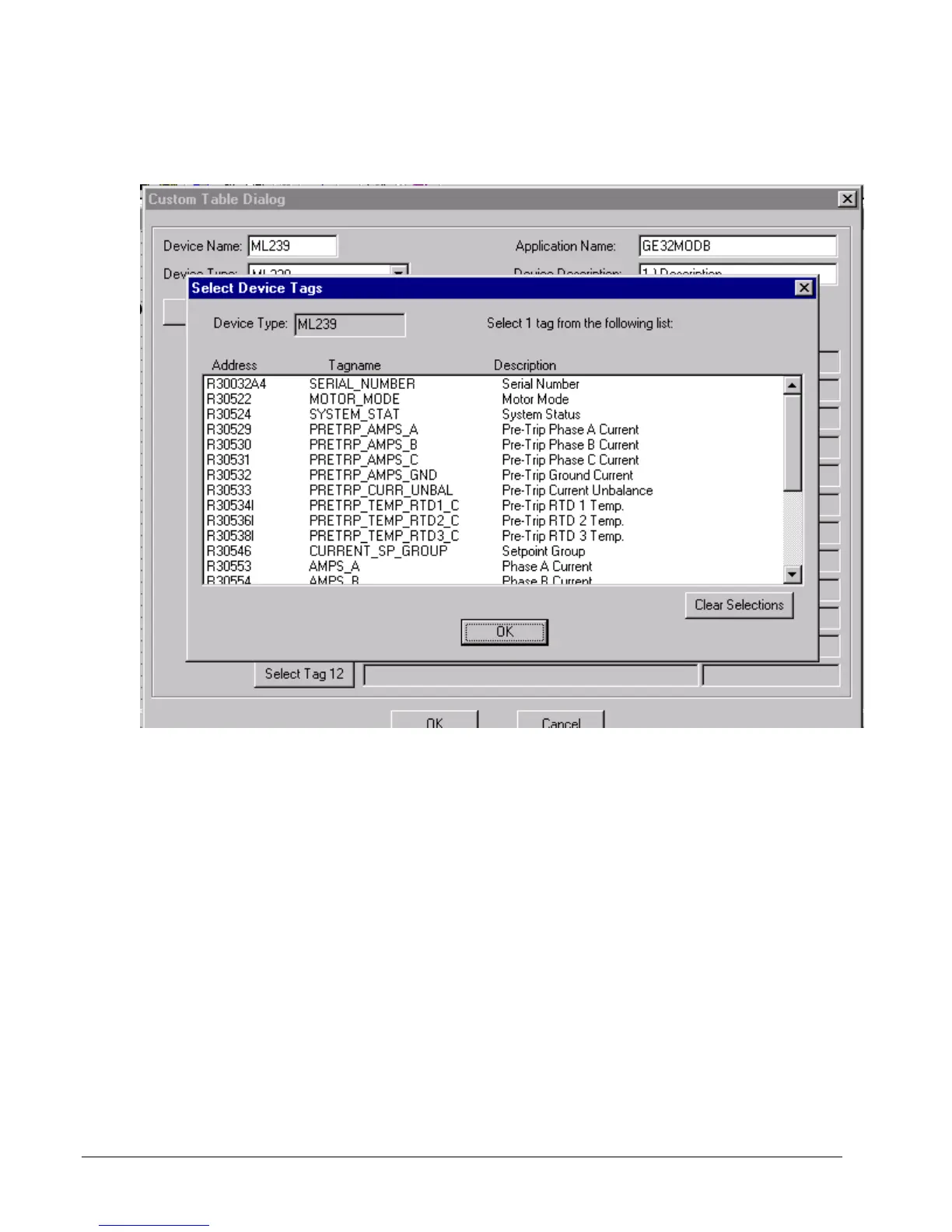 click OK to return to the Custom Table dialog box. The selected tags will now be