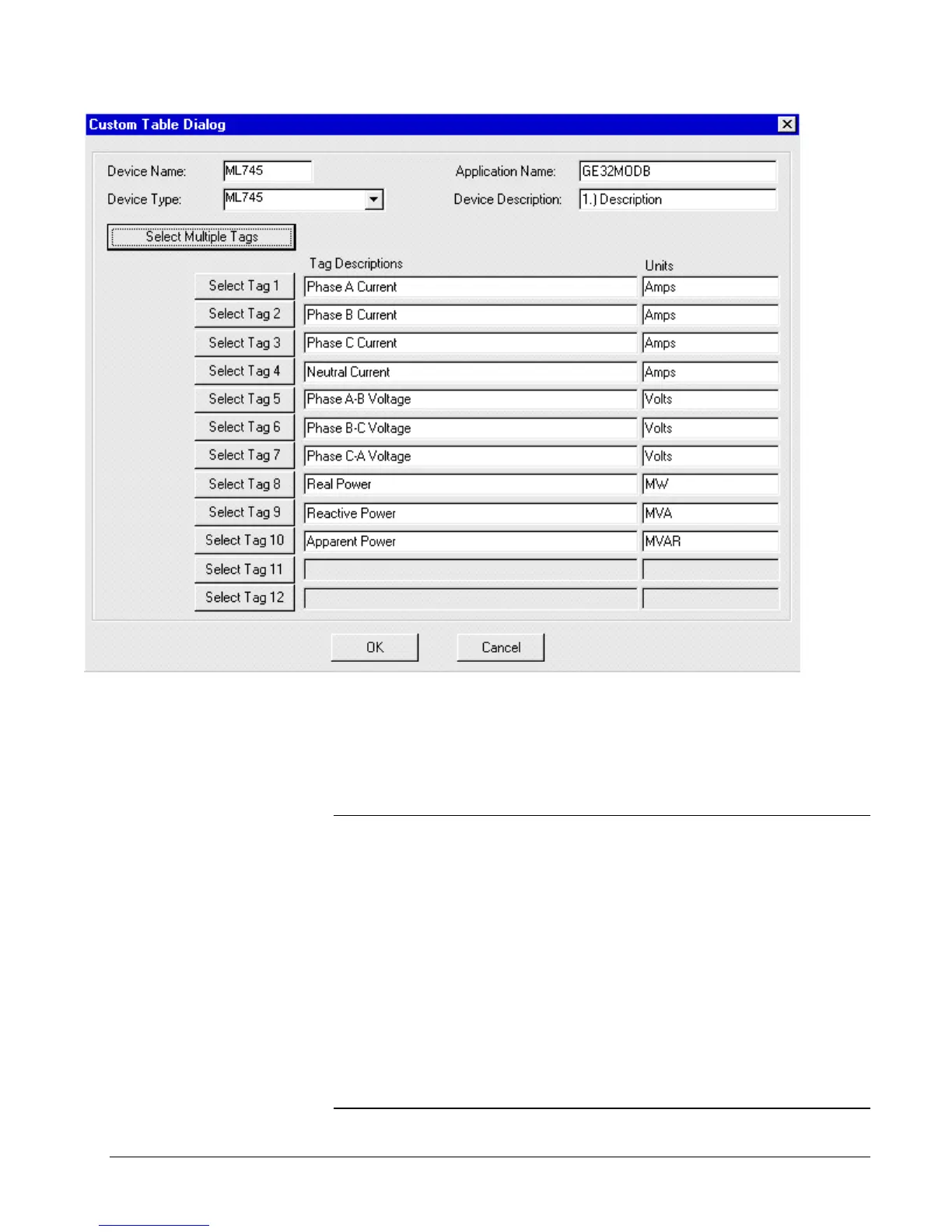 You may select OK to select this table configuration, or you may edit the tags one at