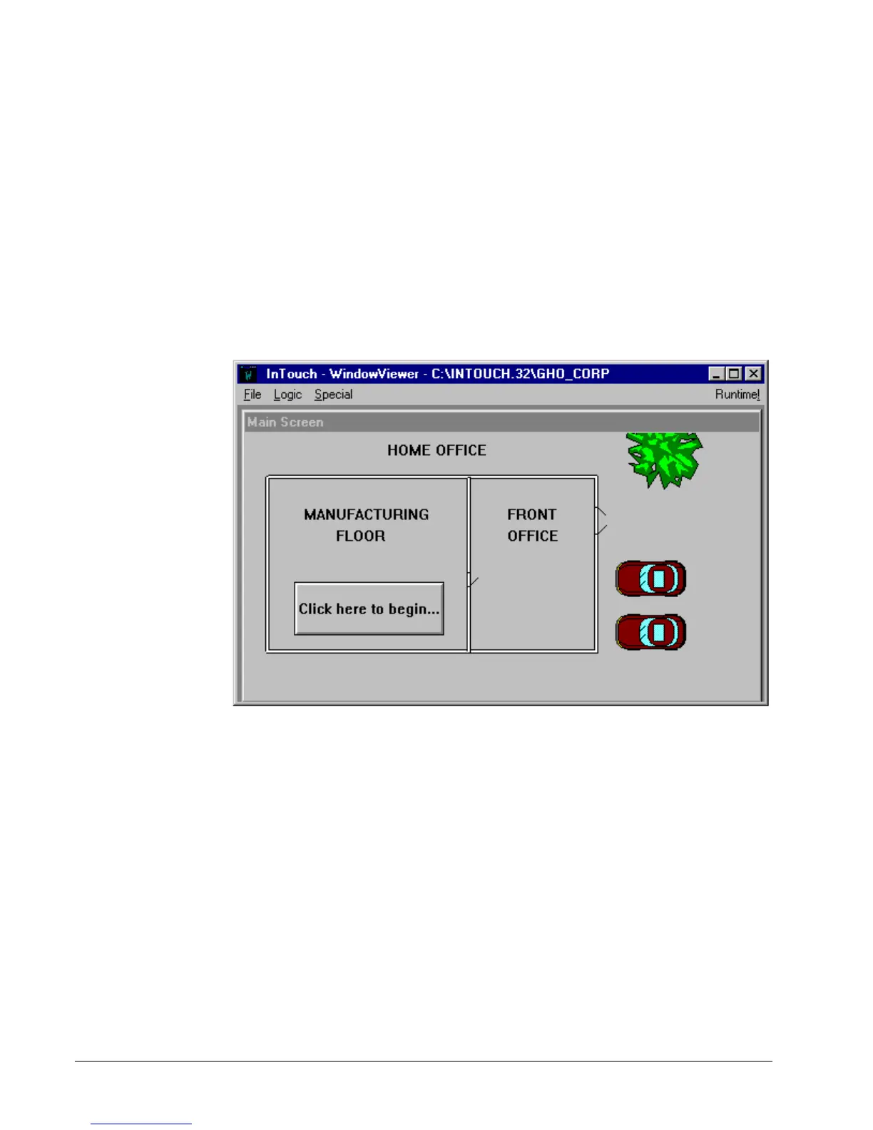 Select the window named Main Screen, and use the Wonderware tools to sketch a