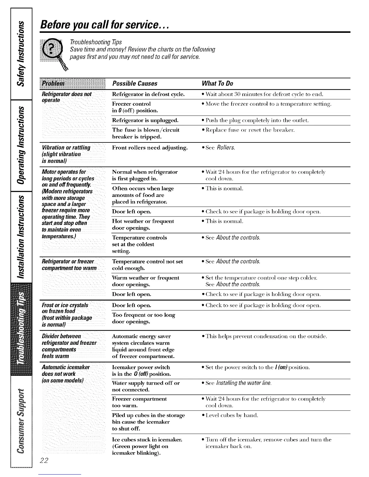 Motor operates for Normal when refrigerator • _'ait 24 hom_ fin" the refl_igerator to completely