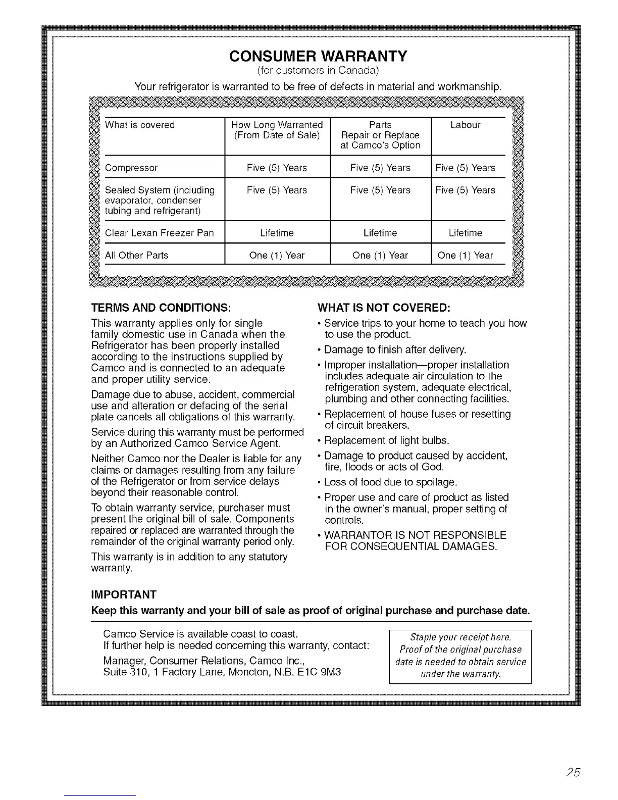 Your refrigerator is warranted to be free of defects in material and workmanship.