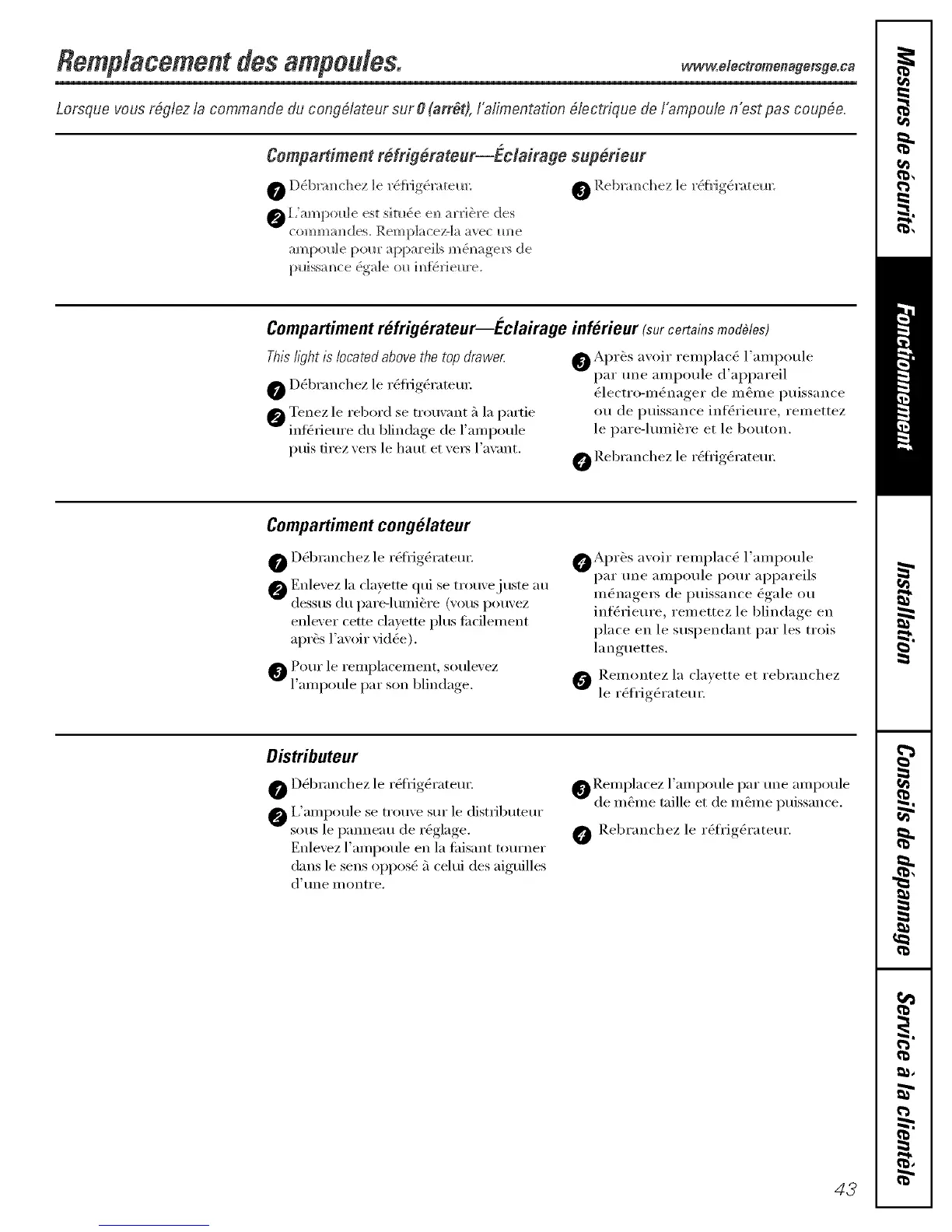 Compartiment refrigerateur--_'clairage inferieur (sur certains modbles)