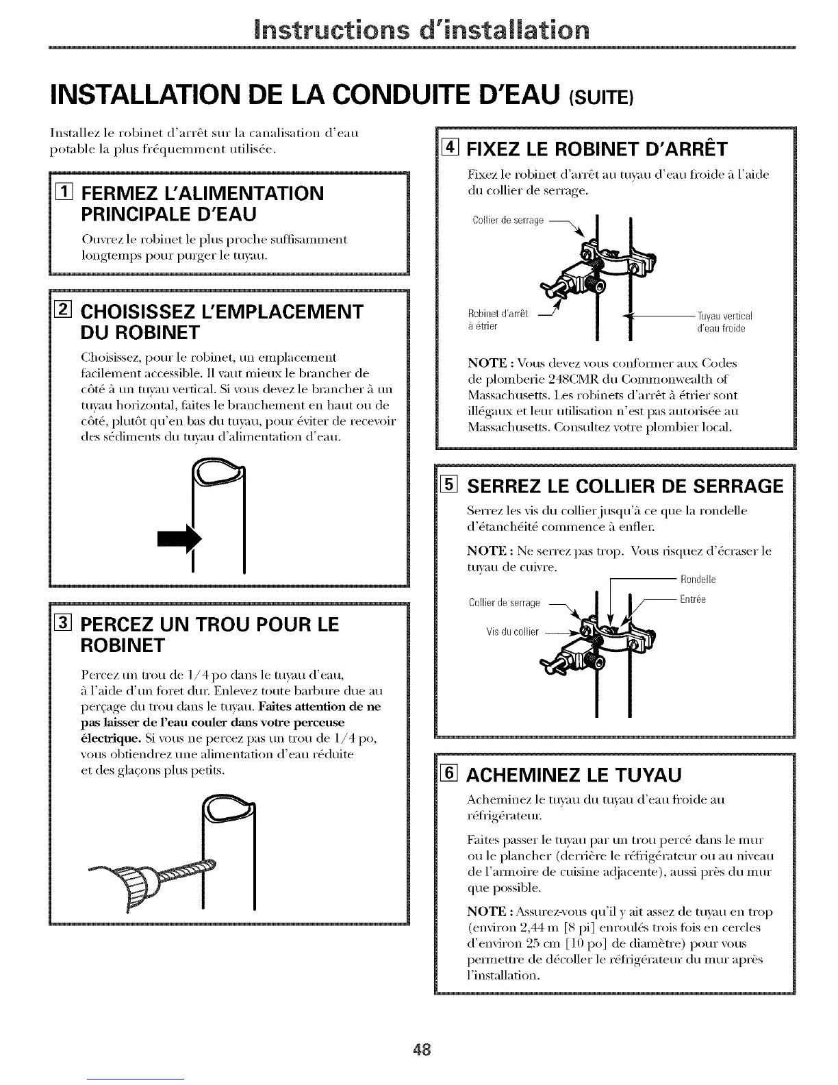 lnstallez le robinet d'arr6t sur la canalisation d'eau