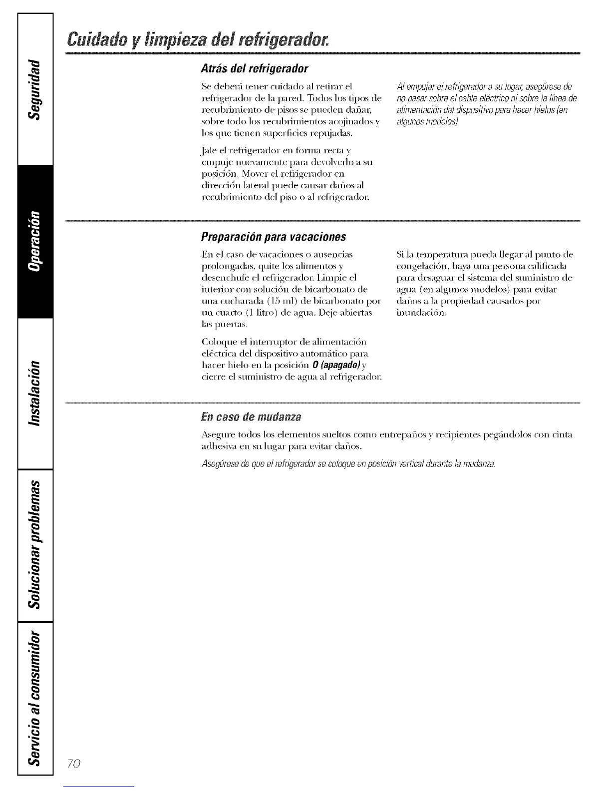 AsegOresedeclueel refn)eradorso coloqueonposl?i6nvertical durantela mudanza.