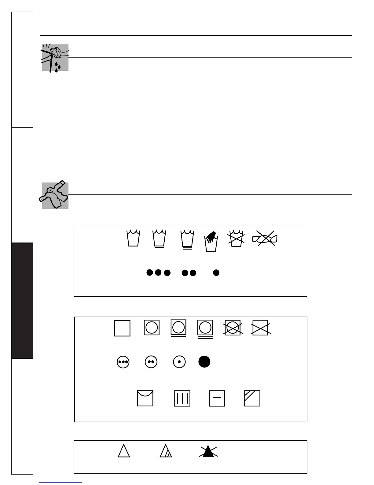 Below are fabric care label “symbols” that affect the clothing you will be laundering.