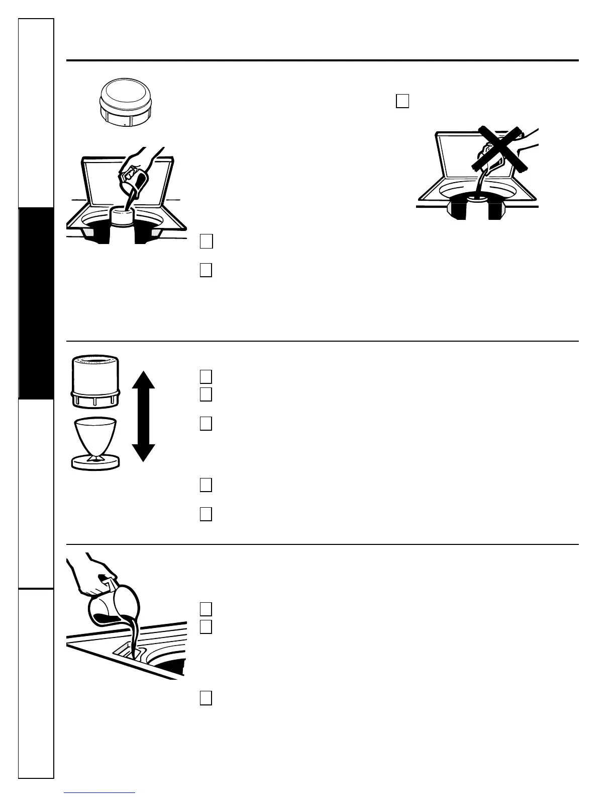en el embudo. Evite salpicar o llenar el dosificador en exceso. Si prefiere usar blanqueador