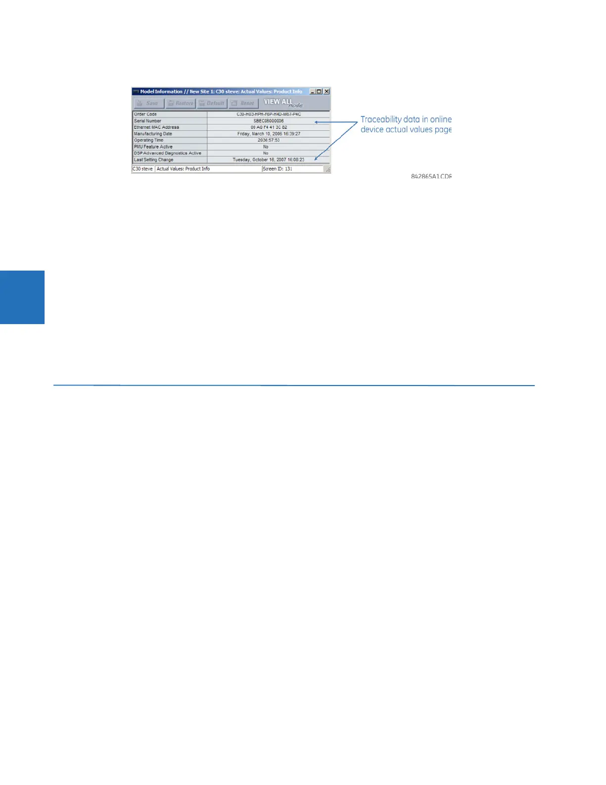 ACTUAL VALUES PRODUCT INFO MODEL INFORMATION SERIAL NUMBER