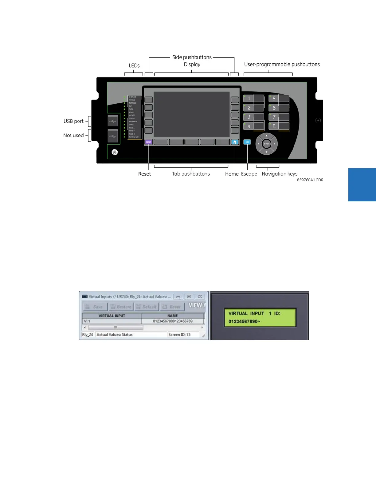 The front panel can be viewed and used in the EnerVista software, for example to view an error message displayed on the