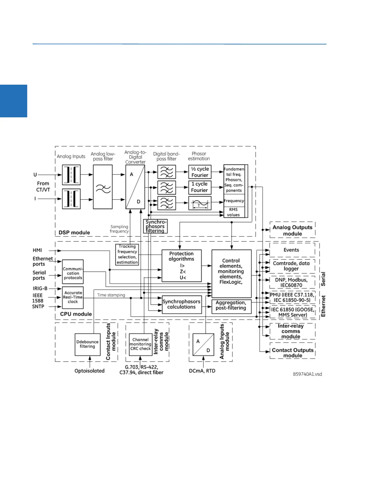 analog filtering as well as signal conditioning. The same filtering is applied for phase, ground currents, phase-to-phase