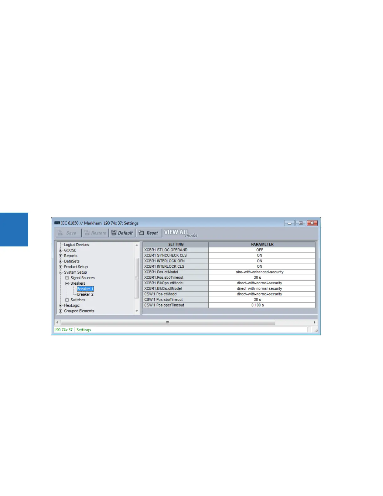 configure the IEC 61850 protocol interface with the first breaker control and status monitoring element. The settings and