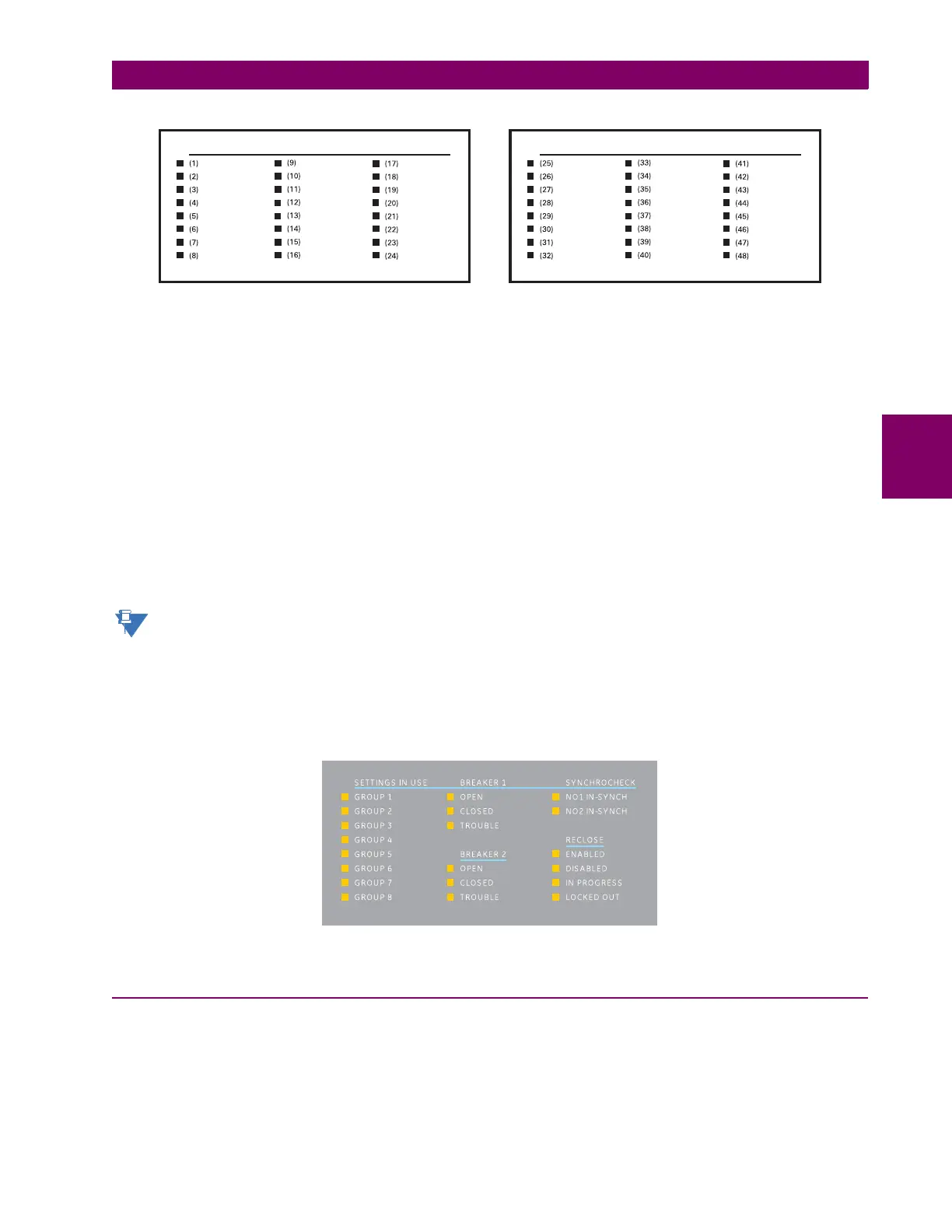 • SYNCHROCHECK NO1(4) IN-SYNCH: Voltages have satisfied the synchrocheck element.