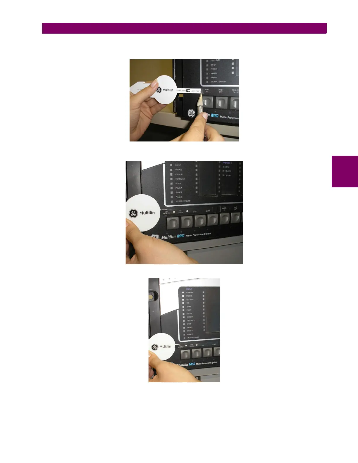 1. Use the knife to lift the pushbutton label and slide the tail of the label tool underneath, as shown below. Make sure the