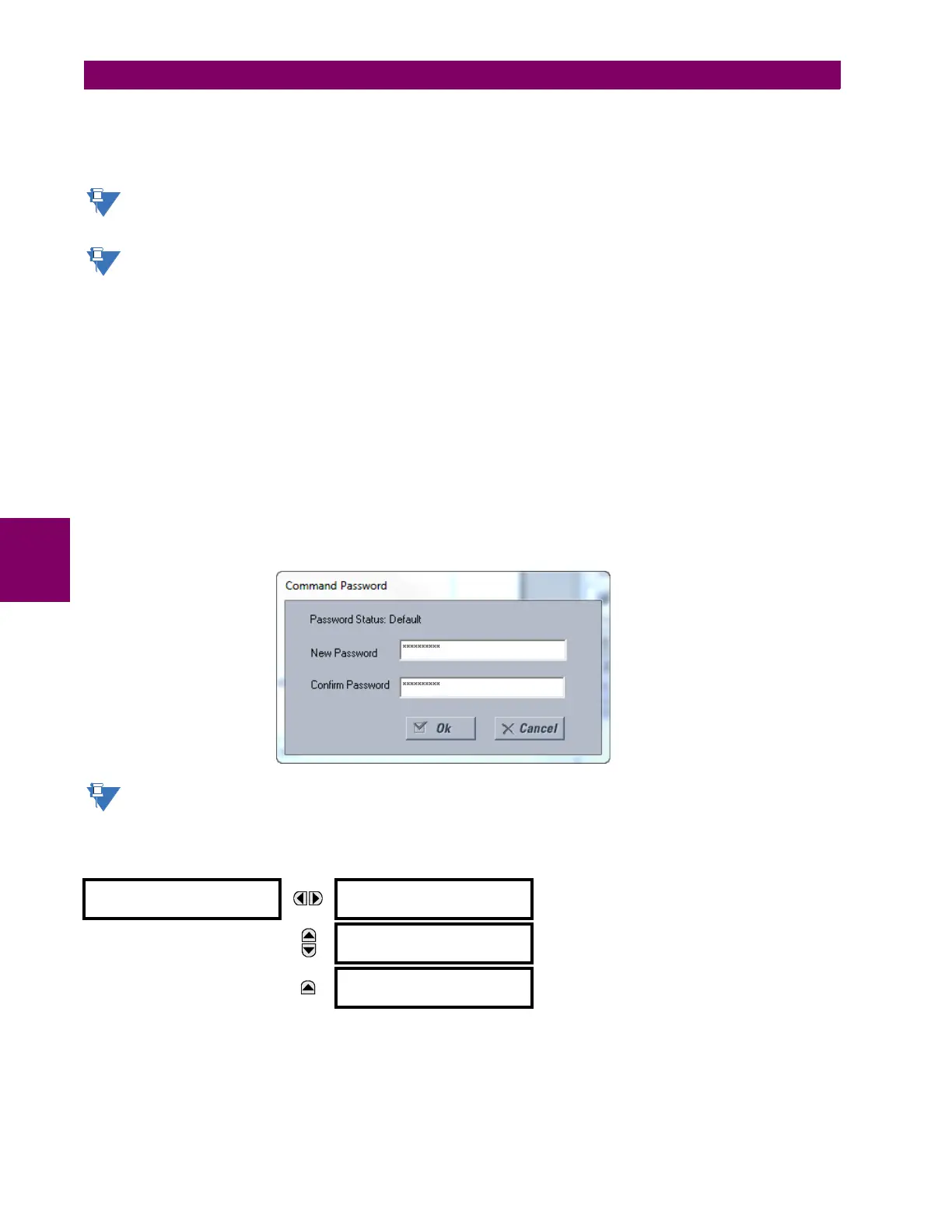 Proper passwords are required to enable each command or setting level access.