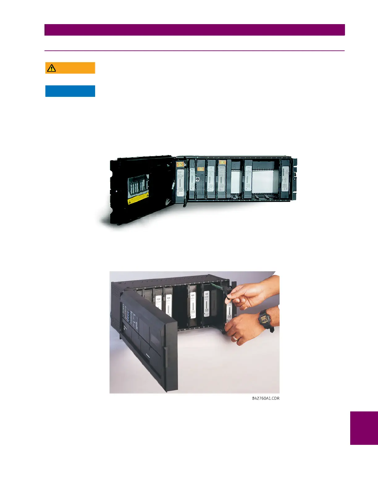 To properly remove a module, the ejector/inserter clips, located at the top and bottom of each module, must be pulled