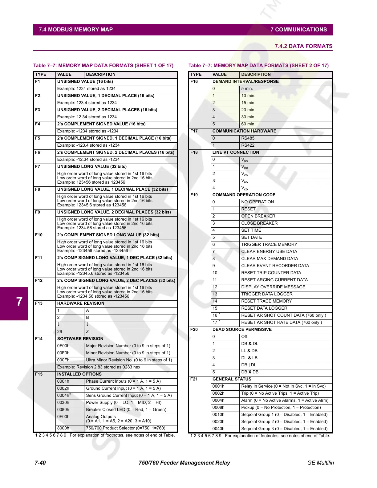 7.4 MODBUS MEMORY MAP 7 COMMUNICATIONS