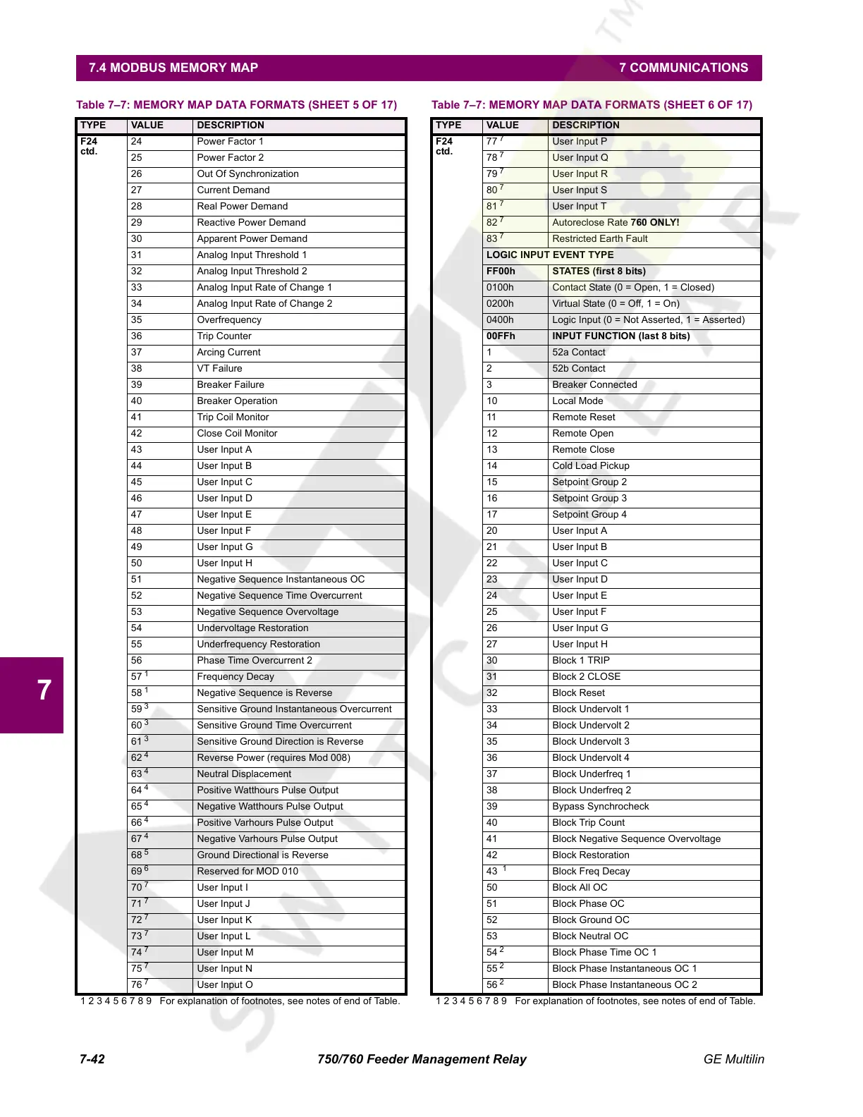 7.4 MODBUS MEMORY MAP 7 COMMUNICATIONS