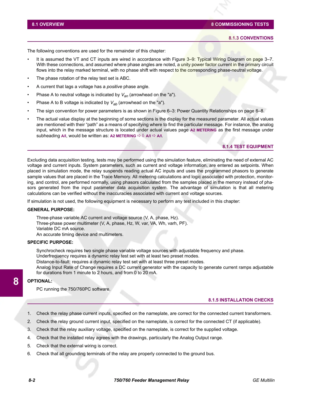 • It is assumed the VT and CT inputs are wired in accordance with Figure 3–9: Typical Wiring Diagram on page 3–7.