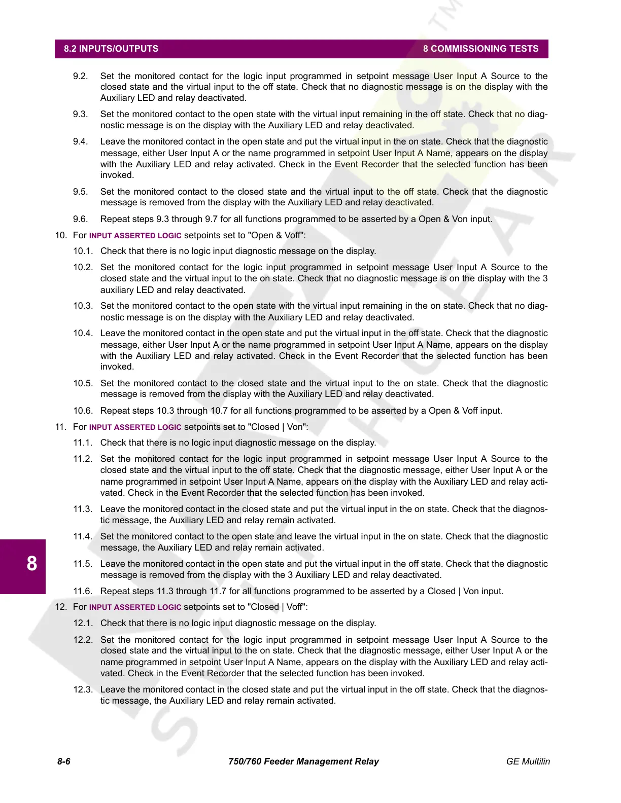 8.2 INPUTS/OUTPUTS 8 COMMISSIONING TESTS